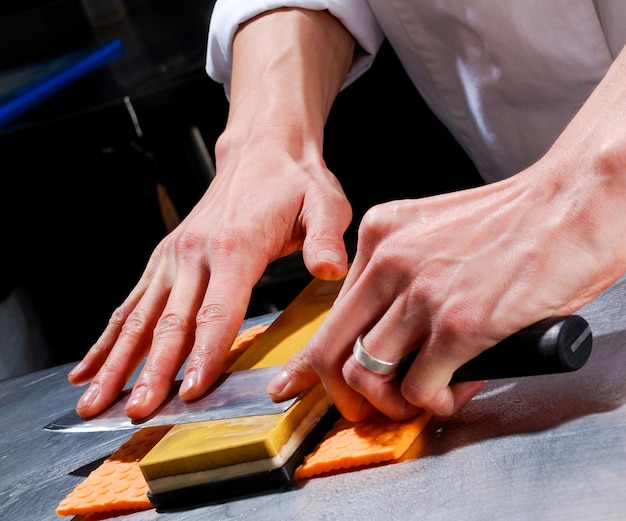 Trabajo con cocineros que no pueden perder tiempo. Afilo cuchillos de forma rápida y precisa para que volváis al servicio sin interrupciones.